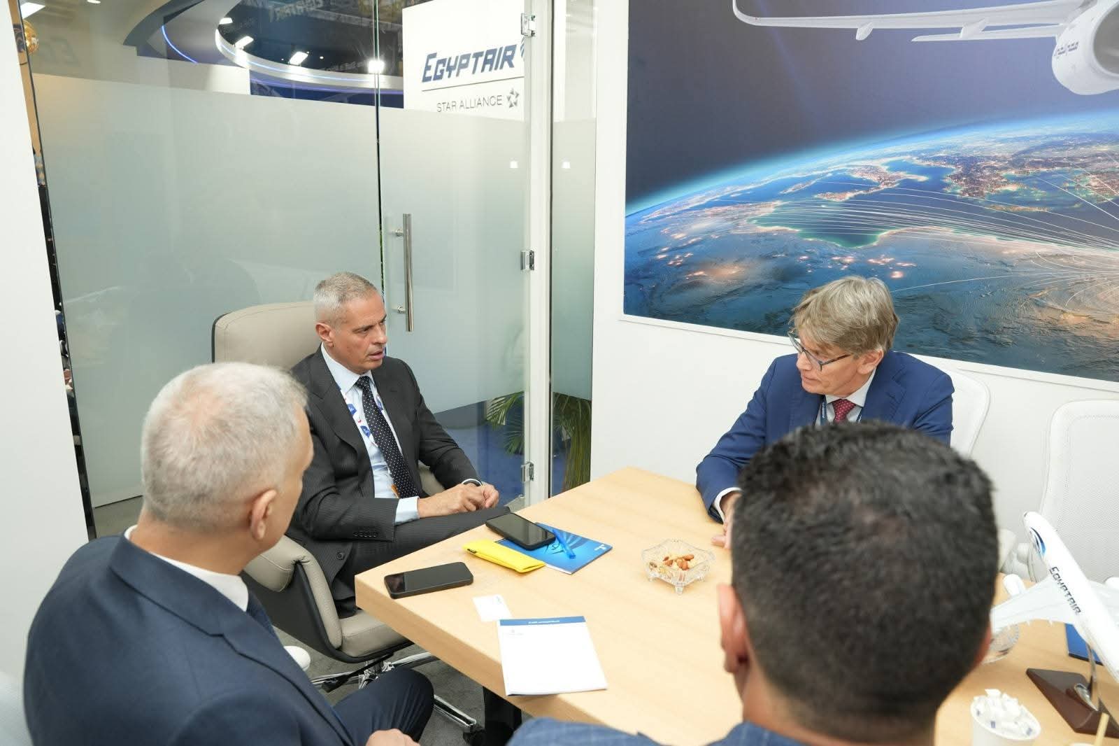 - كما إلتقى عادل مع ووتر فان ويرش نائب الرئيس التنفيذي لشركة إيرباص العالمية وجابرييل سيميلاس رئيس شركةايرباص لمنطقة الشرق الأوسط وأفريقيا، حيث تشغل مصر للطيران طرازات مختلفة من طراز إيرباص بأسطول شركة مصر للطيران (A320/A321neo , A330-200/300) بالإضافة إلى الطائرات الجديدة من طراز A350-900 المتوقع البدء فى إستلامها بنهاية عام 2025