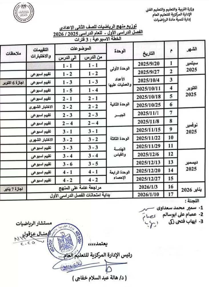 يستعد طلاب المدارس لاستئناف العام الدراسي الحالي 2025-2026 حيث يبدأ الفصل الدراسي الثاني بالمدارس لجميع المراحل الدراسية يوم السبت 7 فبراير 2026، و تنشر بوابة الجمهورية توزيع منهج الرياضيات للصف الثاني الإعدادي.