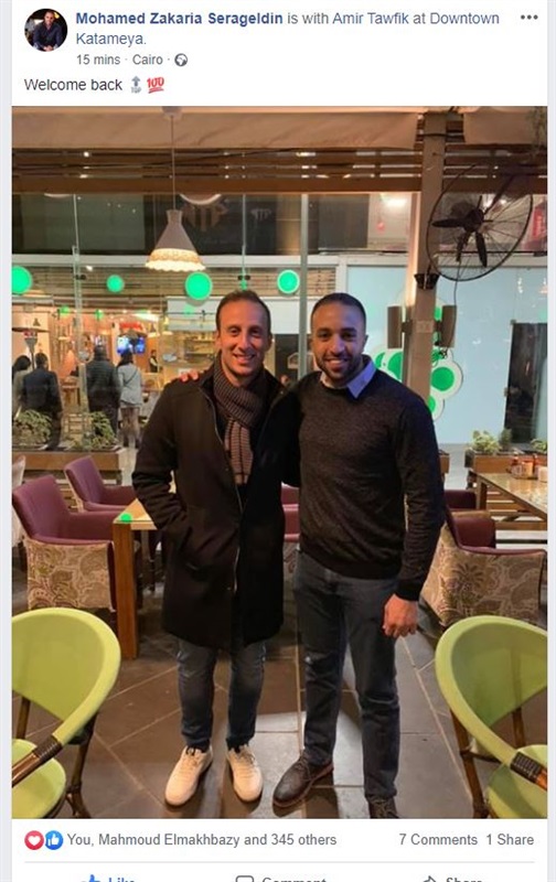 وظهر أمير توفيق بعد وصوله للقاهرة بوقت قليل بصحبة الدكتور محمد سراج الدين عضو مجلس إدارة الأهلي في أحد مناطق التجمع الخامس حيث تم توجيه الدعوه للاعب لتناول وجبة العشاء.