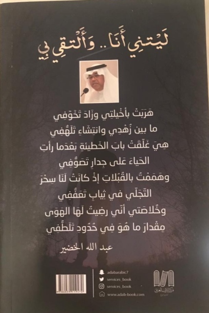 سبق أن صدر للشاعر الخضير أربع مجموعات شعرية " هَذَا قَدَرِي " و " مرايا من روحي " و " وجَعٌ بامتدادِ دمي " و " أرجوحةٌ من قَلَق " ، وقد حقق الشاعر الخضير طالب دكتوراه الفلسفة في الأدب والنقد في جامعة الملك فيصل على العديد من الجوائز على مستوى الشعر ، وكان آخرها فوزه بالمركز الأول في جائزة الشيخ راشد بن حميد للثقافة والعلوم فرع الشعر الفصيح ( الحديث) لهذا العام عن قصيدته ( مالمْ يَقُلْهُ الغرابُ لربِّهِ).