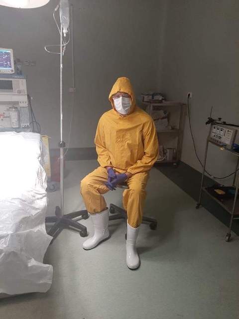 قام الفريق الطبي باتباع الاجراءات الصحية والوقائية اللازمة قبل إجراء العملية حيث ارتدي الفريق الطبي بدل العزل الصفراء اللون،