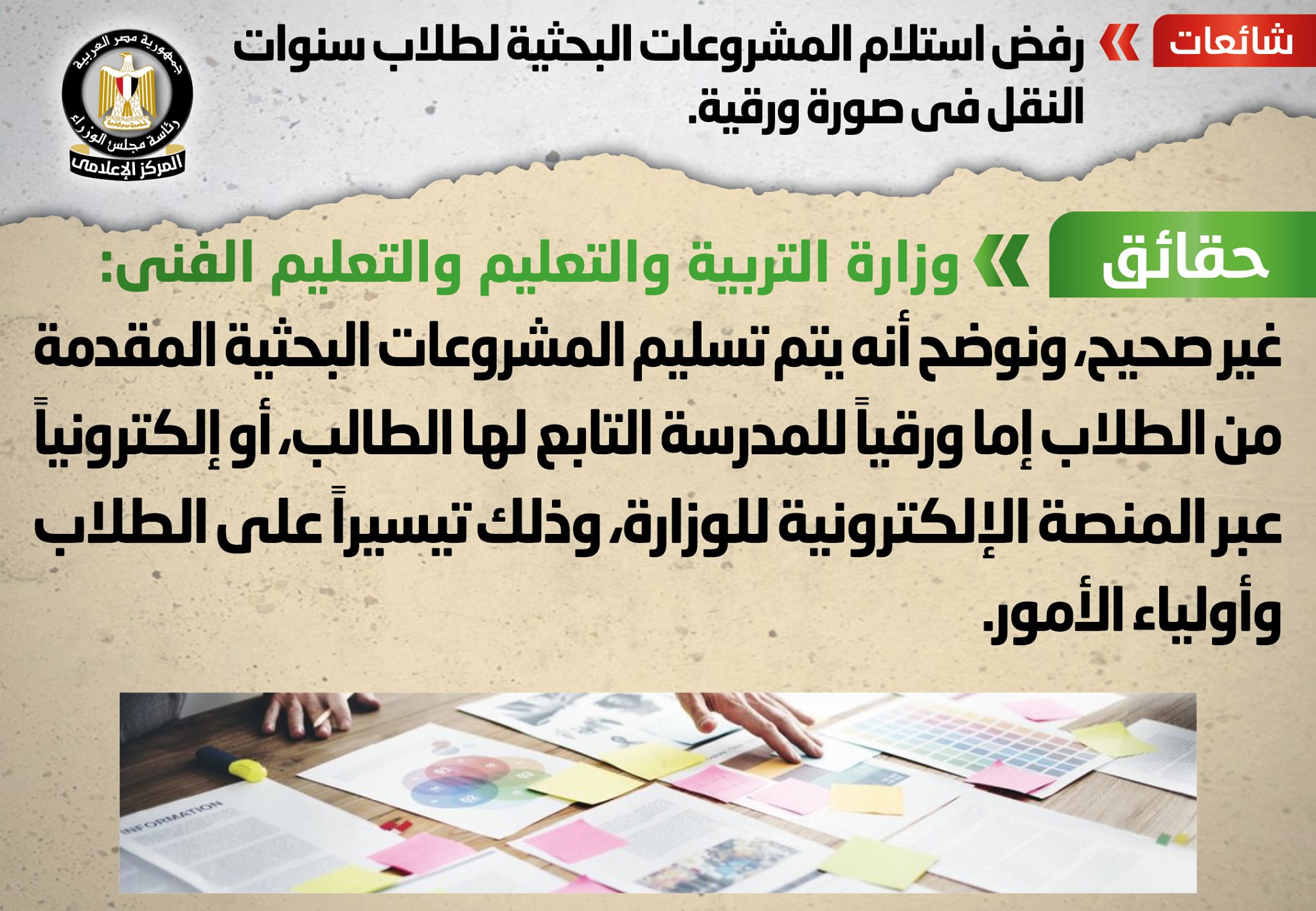 وقد قام المركز الإعلامي لمجلس الوزراء بالتواصل مع وزارة التربية والتعليم والتعليم الفني، والتي نفت تلك الأنباء، مُؤكدةً أنه لا صحة لرفض استلام المشروعات البحثية لطلاب سنوات النقل في صورة ورقية،