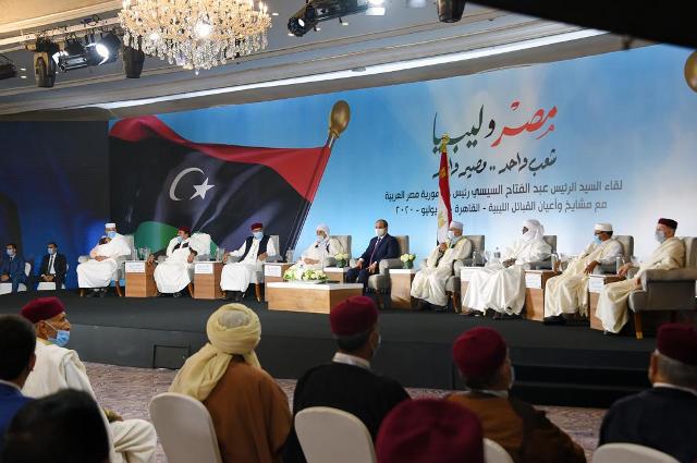 ومن جانبهم، اعرب مشايخ واعيان القبائل الليبية عن كامل تفويضهم للسيد الرئيس والقوات المسلحة المصرية للتدخل لحماية السيادة الليبية واتخاذ كافة الاجراءات لتأمين مصالح الأمن القومي لليبيا ومصر ومواجهة التحديات المشتركة وذلك ترسيخا لدعوة مجلس النواب الليبي لمصر للتدخل لحماية الشعب الليبي والحفاظ علي وحدة وسلامة اراضي بلاده.