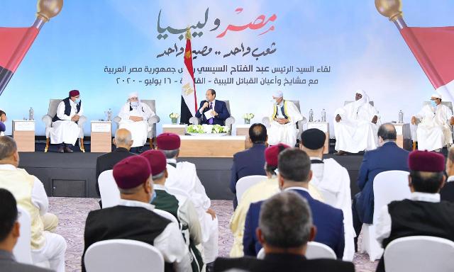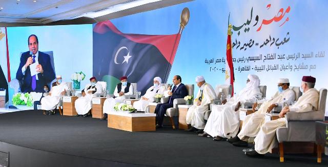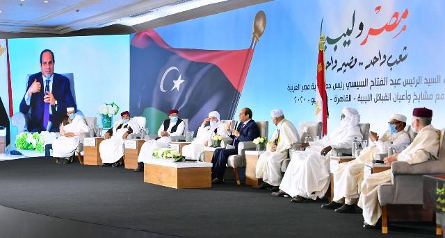 وصرح المتحدث باسم رئاسة الجمهورية السيد الرئيس اكد خلال اللقاء الذي عقد تحت شعار "مصر وليبيا .. شعب واحد ... مصير واحد" ان الهدف الاساسي للجهود المصرية علي كافة المستويات تجاه ليبيا هو تفعيل الارادة الحرة للشعب الليبي من اجل مستقبل افضل لبلاده وللاجيال القادمة من ابنائه، وإن الخطوط الحمراء التي أعلنه سيادته من قبل في سيدي براني هي بالأساس دعوة للسلام وإنهاء الصراع في ليبيا، الا ان مصر لن تقف مكتوفة الأيدي في مواجهة أية تحركات تشكل تهديداً مباشراً قوياً للأمن القومي ليس المصري والليبي فقط وإنما العربي والإقليمي والدولي.