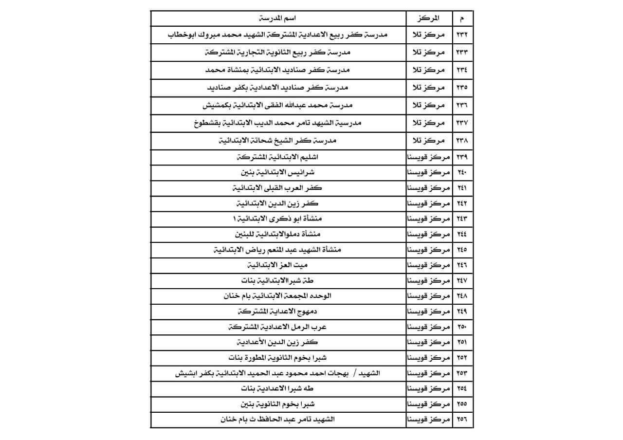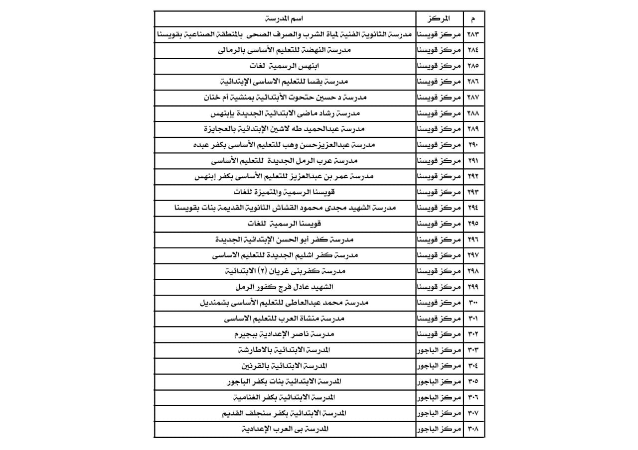 قال الدكتور أحمد سويد وكيل وزارة التربية والتعليم بالمنوفية أنه تم تجهيز 450 مدرسة مقرات انتخابية من أصل 512 مقراً على مستوى المحافظة ,