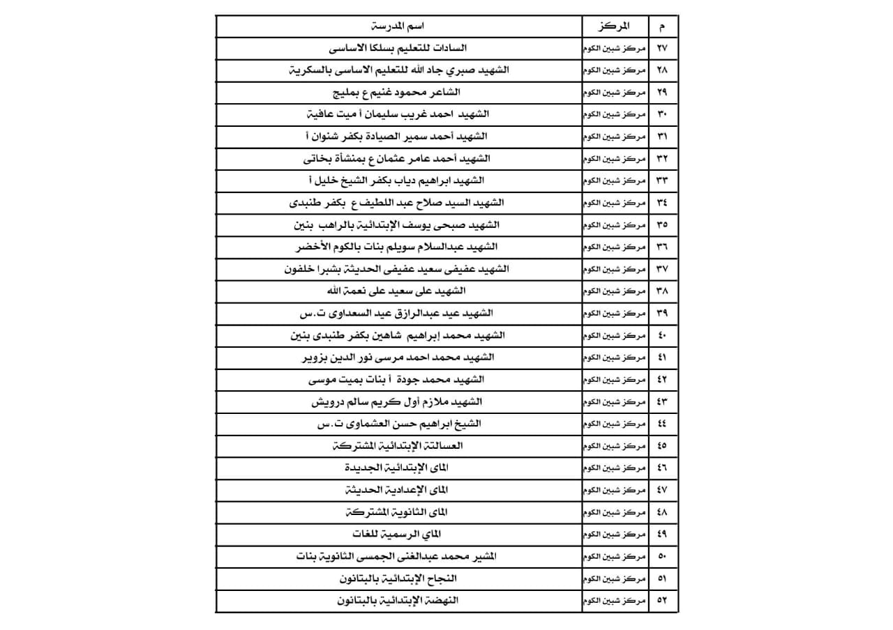 مشيراً أنه تقرر منح أجـازة اليوم السبت وغداً الأحد الموافقين السابع والثامن من نوفمبر الجاري فى تلك المدارس فقط أما باقى المدارس فالدراسة منتظمه بها و تعمل بصورة طبيعية.