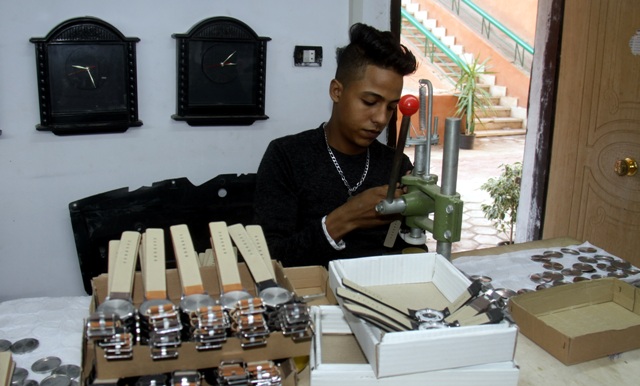 تفاجأت "الجمهورية أون لاين" بوجود مصنع آخر لإنتاج الساعات ووجدنا رجلاً يجلس منكباً على طاولات العمل بسعادة تكسو ملامح وجهه الستينى يدعى رجب سيد وقال" عندى "60 سنة" وكنت ساكناً فى عشوائىات منشية ناصر وكنت شغال "فران" لكنها شغلانة صعبة فى الاسمرات لقيت شغلانة مناسبة ليا فى مصنع الساعات دخلها المادى مناسب بصرف منها على زوجتى وابنتى، بفرح وأنا بجمع أجزاء الساعة، وتطلع من تحت إيدى على إيد اللى هايلبسها.. والحمد لله الحياة فى الاسمرات أحلى والدنيا ماشية، لكن نتمنى يراعونا قليلاً لأن الكهربا بالكارت والغاز والمياه بالكارت.
