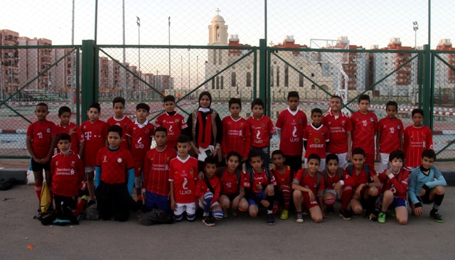 فريق من الصبية أكبرهم فى سن الرابعة عشر يرتدون التيشرتات الحمراء أمام بوابة نادى الاسمرات استعداداً لتدريب كرة القدم.. قالوا إنهم ينتظرون الدخول على عجل ويخشون من سوء الأحوال الجوية حيث منعتهم الأمطار الليلة الماضية من التدريب.