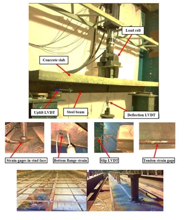 أشار الباحث الدكتور أحمد إبراهيم حسانين محمد، إلى أنه تم إجراء الإختبارات المعملية الخاصة بهذه الرسالة فى معامل الخرسانة المسلحة والمنشآت الثقيلة بكليات الهندسة بجامعات: "المصرية الروسية، الزقازيق، وطنطا".. موضحاً أن الدراسة تحولت من دراسة معملية عملية إلى دراسة التحميل الإستاتيكى على الكمرات المركبة مع أو بدون تدعيم باستخدام الكابلات، والتحميل الديناميكى والذى بدوره ينقسم إلى قسمين أساسيين: "أولهما التحميل التصاعدى حتى الإنهيار، والثانى تحميل الكلال وهو تحميل متكرر ديناميكى لفترات طويلة"، ويتجاوز عدد دورات التحميل المليون دورة، كما هو الحال فى "المنشآت الصناعية"، التى تحتوى على ماكينات ثقيلة تولد اهتزازات متكررة بصورة شبه دائمة ولفترات طويلة أو مثل المركبات التى تمر على الكبارى لفترات طويلة، وتولد اهتزازات ذات ترددات منخفضة.
