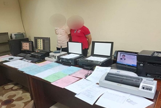عقب تقنين الإجراءات تم إستهدافه وأمكن ضبطه وبتفتيش الشركة عثر بداخلها على "2 جهاز حاسب آلى – 2 طابعة إحداهما مزودة بماسح ضوئى - 2ماكينة لتقطيع وتغليف الكارنيهات - سخان حرارى – 2 هاتف محمول - مبلغ مالى" ، وبفحص أجهزة الكمبيوتر المضبوطة تبين إحتوائها على "عدد من الكارنيهات منسوب صدورها إلى بعض الجهات الحكومية- مجموعة من الخطابات والتقارير المنسوب صدورها إلى إحدى المستشفيات جميعها خالية البيانات ومعدة للتزوير، دليل أعضاء لإحدى الجمعيات العمومية خاصة بإحدى الجهات النقابية بمحافظة الدقهلية، نموذج لأكلاشيه إعتماد خاص بإحدى الوحدات المرورية"، وبمواجهة المتهم أقر بممارسة نشاطه الإجرامى على النحو المشار إليه مستخدماً الأجهزة المضبـوطة لترويجها لراغبى الحصول عليها مقابل تحصله على مبالغ مالية.