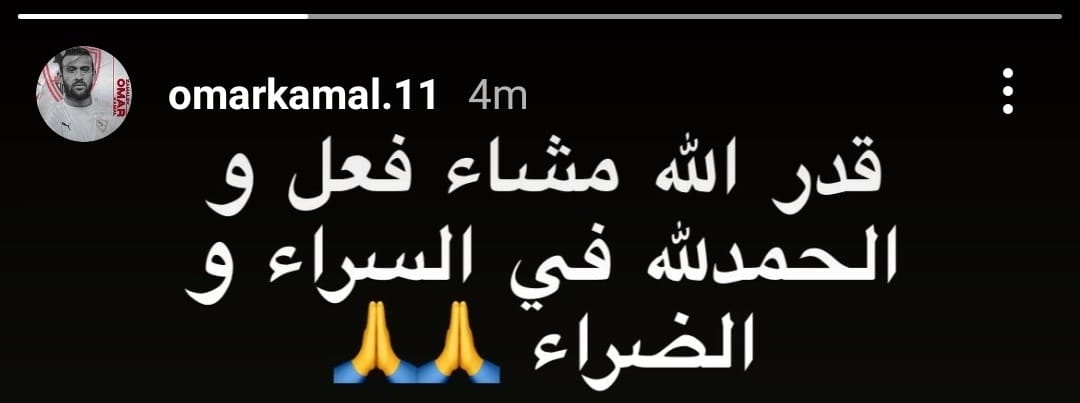 وكتب عمر كمال عبر حسابه على "انستجرام": "قدر الله وما شاء فعل الحمد لله في السراء والضراء".