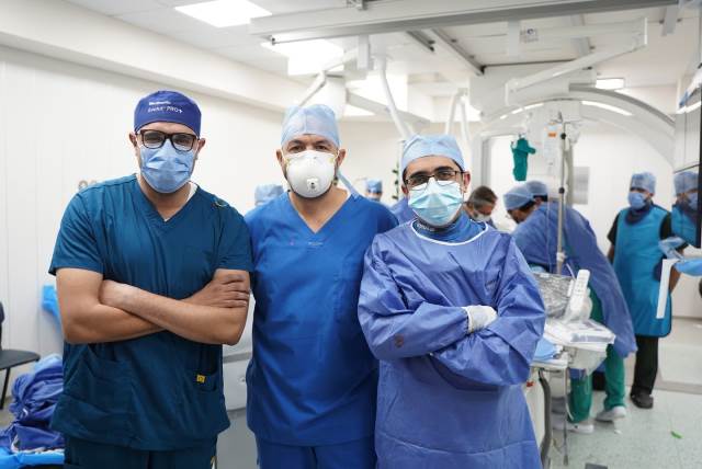 فى ذات السياق، أوضح الدكتور وليد السروجى، عميد كلية الطب فى جامعة حلوان، أن العملية تمت بواسطة فريق فى تخصص القلب والأوعية والقسطرة، بقيادة الدكتور ياسر صادق خبير تغيير الصمام الأورطى بالقسطرة ومدرس القلب ومدير وحدة قسطرة القلب بالمستشفى، والدكتور أحمد جعفر رئيس قسم القلب والاوعية بكلية طب جامعة حلوان، وأعضاء هيئة التدريس وبمعاونة فريق من قسم جراحة الاوعية، ود.شريف عمر مدرس جراحة الأوعية وجراحة القلب والصدر، ود.أحمد طعيمة مدرس جراحة القلب والصدر.