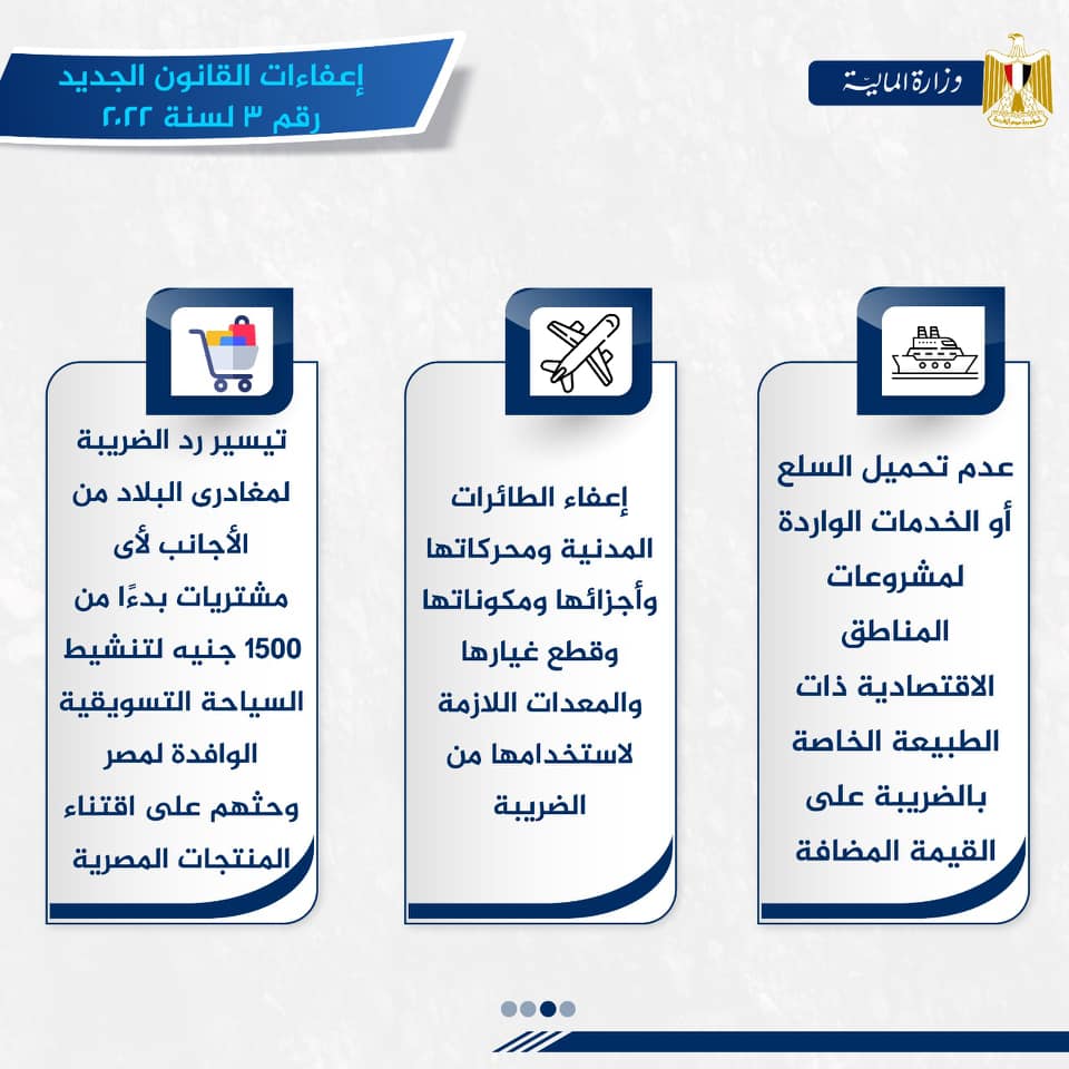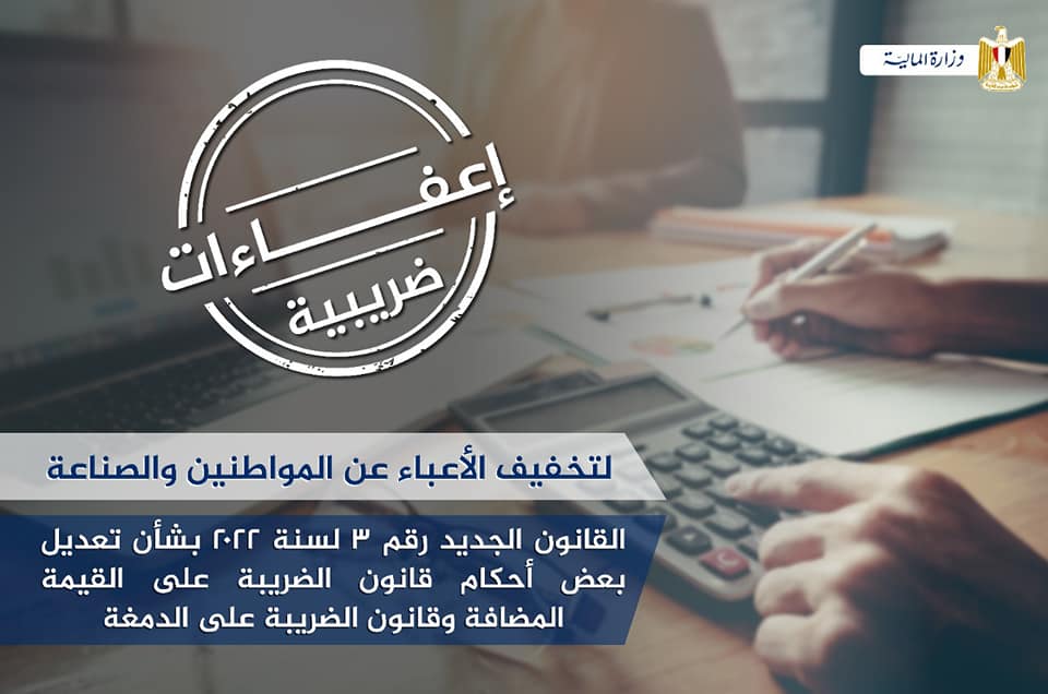 صدر القانون الجديد بتعديلات "القيمة المضافة والدمغة" ويتضمن إعفاءات ضريبية لتخفيف الأعباء عن المواطنين والصناعة.. حيث تمت مراعاة البعد الاجتماعي فى خدمات حيوية تمس حياة الناس رغم كل التحديات العالمية وأزمة كورونا التي أثرت على اقتصادات العالم.