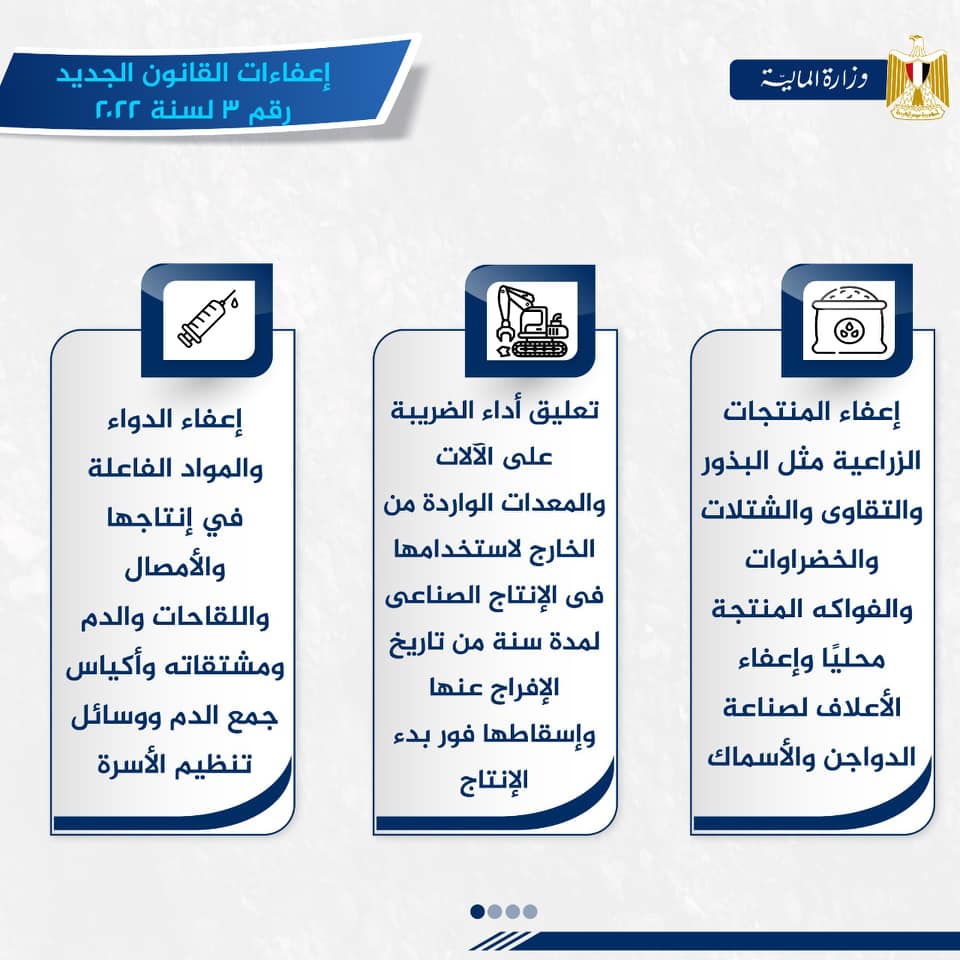 نشرت وزارة المالية على صفحتها الرسمية على أحد مواقع التواصل الاجتماعى "فيس بوك"، إنفوجرافا جديدا يوضح تفاصيل الإعفاءات الضريبية الجديدة.