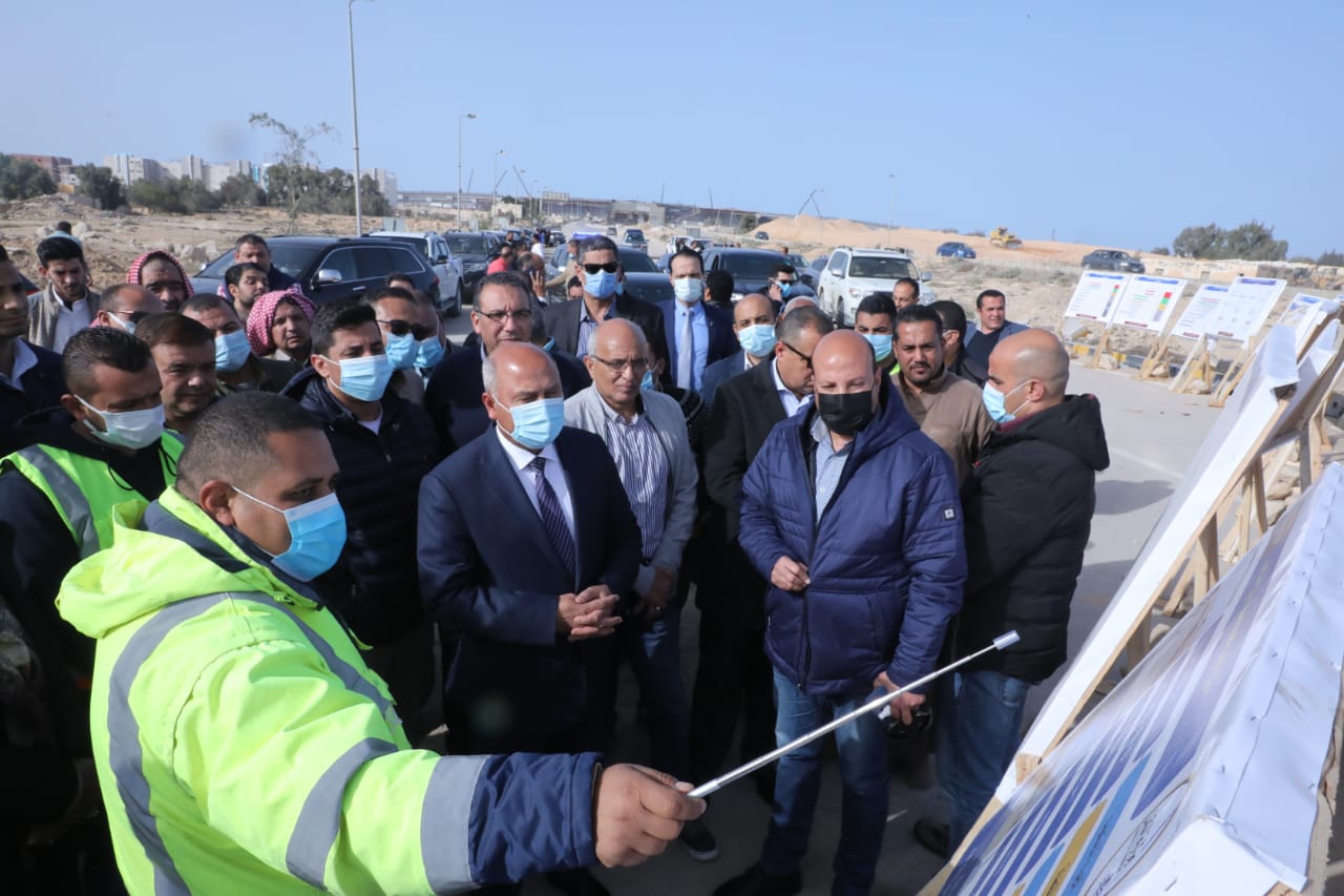 ثم تفقد الوزير مشروع كوبري الحمام السطحي وكوبري السكه الحديد والذي يتضمن انشاء كوبري أعلى ترعة الحمام بطول ٣٠ متر وعرض 45 متر بواقع ٥ حارة مرورية لكل إتجاه وإنشاء كوبري السكة الحديد بطول ٦٥٠ متر وعرض ٣٠ متر بواقع ٣ حاره مرورية لكل اتجاه.