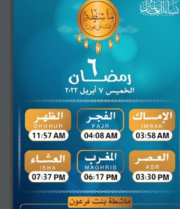 ونتناول فى شخصية اليوم _ ماشطة ابنة فرعون _كانت خادمة تمشط ابنة فرعون وقد امنت واخفت ايمانها حتى سقط المشط من يدها فقالت بسم الله فقالت ابى قالت لا ولكن ربى ورب ابيك الله_ فذكرت ابنة فرعون ذلك لابيها فجاء بها ولما سألها وكشفت عن ايمانها فأخذ يرمى اطفالها واحد تلو الاخر فى قدر او كما فى الرواية "بقرة من نحاس "احميت على زيت مغلى فلما جاء دور رضيعها كأنها تقاعست من اجله _فنطق وليدها فى مهده _قائلاً امى انت على الحق عذاب الدنيا اهون من عذاب الاخرة
