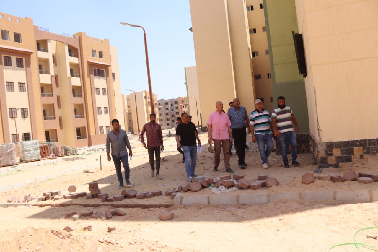 وتفقد أعمال الطرق الرئيسية والفرعية بتلك الأحياء لتسهيل حركة المواطنين ولربط الأحياء ببعضها ومتابعة معدلات التنفيذ وأعمال تنسيق المواقع حتى يتم تسليم الوحدات لمستحقيها كاملة المرافق حسب المواعيد المحددة