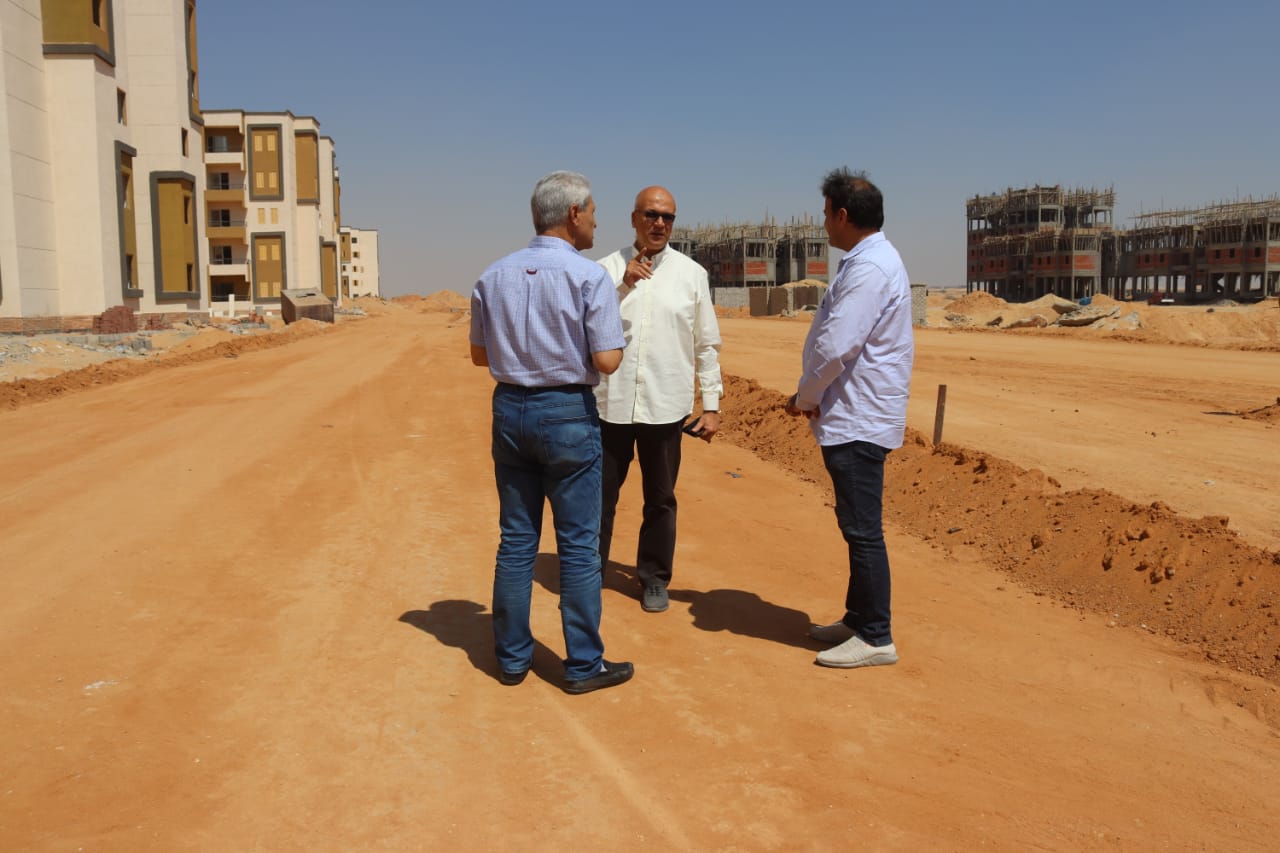 كما تم متابعة أعمال الطرق بالمنطقة A3 أمام شركة مكرونة الملكة وكذا أعمال تركيب أعمدة الإنارة بالطريق .