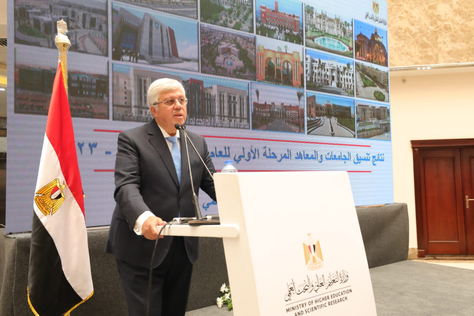 جاء ذلك خلال المؤتمر الصحفى الذى يعقده الدكتور محمد أيمن عاشور، وزير التعليم العالى لإعلان نتيجة تنسيق المرحلة الأولى للقبول بالجامعات وبحضور السيد عطا المشرف على أعمال مكتب التنسيق والدكتور عادل عبد الغفار المستشار الإعلامى والمتحدث الرسمى باسم وزارة التعليم العالى بالإضافة إلى عدد من قيادات الوزارة.