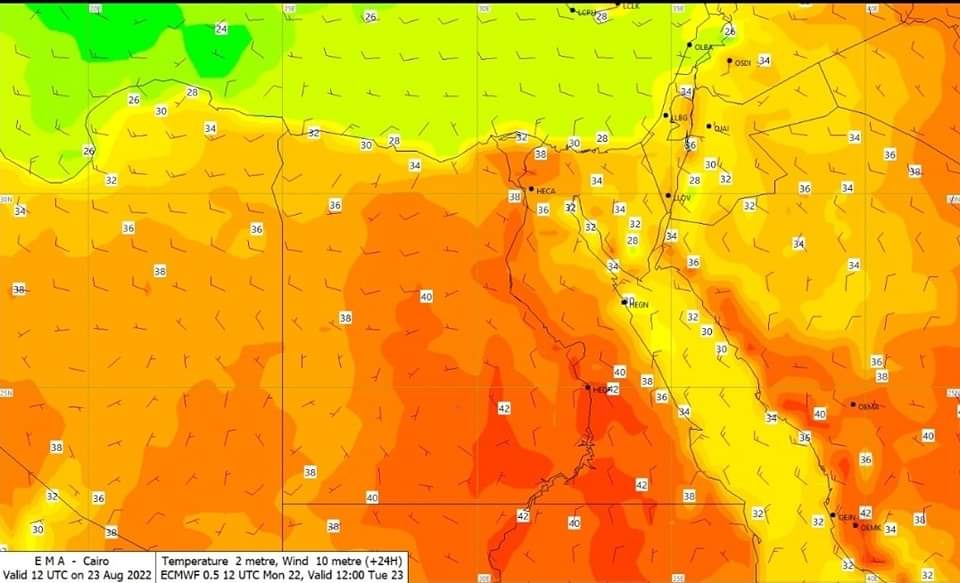 اشارت الهيئة العامة للارصاد الى ارتفاع ملحوظ فى درجات الحرارة على معظم الأنحاء ،