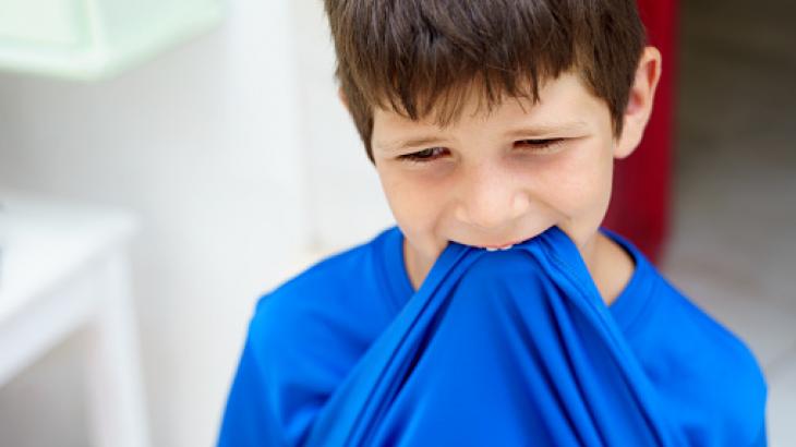 يمكن أن يؤدي القلق أو التوتر لدى الأطفال إلى حدوث تغيير في سلوك الطفل، والمضغ هو أحدهما. وإذا كانت الاسرة تعتقد أن الطفل يعاني من القلق ، فلابد من الاتصال بالطبيب.