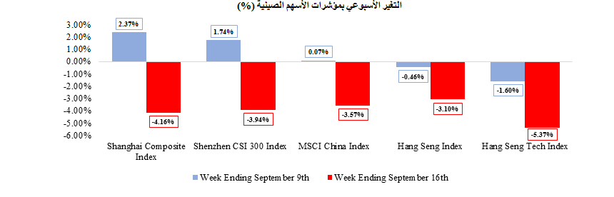 على الرغم من صدور بيانات قوية للإنتاج الصناعي ومبيعات التجزئة في الصين، إلا أن معظم مؤشرات الأسهم الصينية الرئيسية تراجعت بحدة، حيث انخفض كل من مؤشر MSCI الصيني ومؤشر شنغهاي المركب بنسبة 3.57% و 4.16% على التوالي.