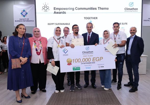 جاء ذلك خلال فعاليات حفل ختام أعمال مسابقة هاكاثون التغير المناخى Climathon الذى نظمته جامعة مصر للمعلوماتية بالتعاون مع شركة أمازون ويب سيرفيس AWS، تحت رعاية وزارتى الاتصالات وتكنولوجيا المعلومات، والتعليم العالى والبحث العلمى؛ حيث يهدف الهاكاثون إلى ابتكار حلول تقنية وإنتاج نماذج أولية لأفكار خلاقة باستخدام تكنولوجيا المعلومات للحد من مخاطر التغير المناخى وتأثيراته السلبية على كوكب الأرض؛ يأتى ذلك تزامنا مع استعداد مصر لاستضافة مؤتمر الأطراف لاتفاقية الأمم المتحدة لتغير المناخ "COP 27" بمدينة شرم الشيخ فى نوفمبر المقبل.