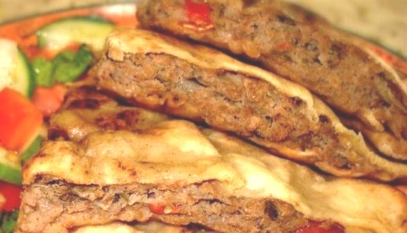 ملحوظة يجب فرد العجين داخل العيش لكي يكون طبقة رقيقة غير سميكة ويقدم مع بطاطس محمرة ومخلل.