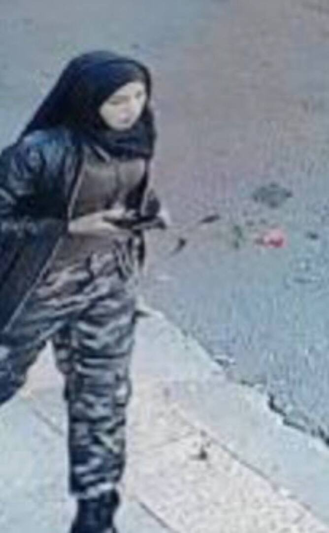 وظهرت المشتبه بها وهي تلبس بنطالا بألوان عسكرية وتضع حجابا على رأسها.