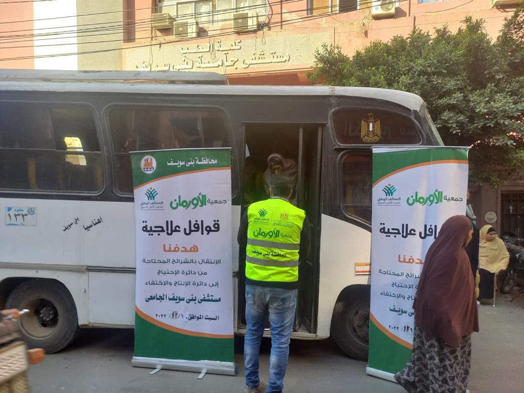 أعلنت مديرية التضامن الاجتماعى ببني سويف بالتعاون مع مكتب مشروعات الأورمان عن تنظيم قافلة علاجية استهدفت توقيع الكشف الطبي على مئات المرضى غير القادرين من أهالى قريتي شريف باشا ومنقريش مركز بني سويف فى محافظه بني سويف، وذلك فى اطار جهود التحالف الوطنى للعمل الاهلى التنموي.