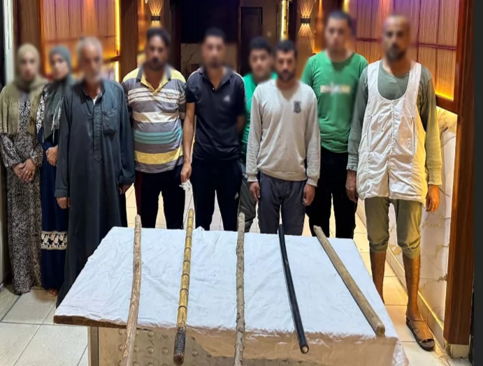 و تمكن ضباط المباحث من ضبطه حيث قام بالامساك بابناءه فى شرفة المنزل مهددا بذبحهم فى حالة محاولة القبض عليه إلا أن ضباط المباحث تمكنوا من السيطرة عليه وانقاذ الأبناء .