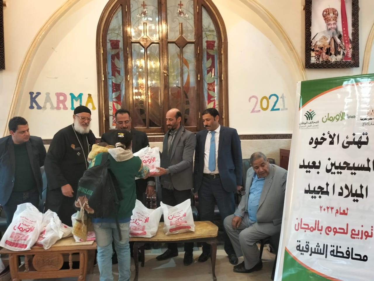 احتفالا بمناسية العام الميلادى الجديد 2023، وبحضور المحاسب عبدالحميد الطحاوى ، وكيل وزارة التضامن الاجتماعي بمحافظة الشرقية، شهدت محافظة الشرقية احتفالية نظمتها المديرية بالتعاون مع جمعية الاورمان لتوزيع عدد (250) كيلو لحوم مجانأ على غير القادرين بكنيسة مريم العذراء بمركز ابوكبير محافظة الشرقية.