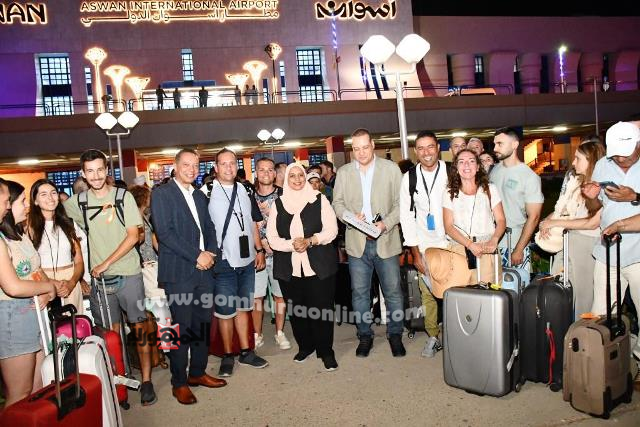 على أنغام الفلكلور الأسوانى و النوبى الأصيل لفرقة توشكى للفنون التلقائية كلف اللواء أشرف عطية محافظ أسوان نائبه بإستقبال أولى الرحلات السياحية للطيران الشارتر القادمة مباشرة من مطار مدريد بدولة أسبانيا الصديقة إلى مطار أسوان الدولى بإجمالى 177 سائح ، وذلك ضمن 3 رحلات تضم 450 سائح أسوان تم وصولهم على مدار اليوم ، وسيتم تنظيمها أسبوعياً ، وبحضور الدكتور أحمد فرمان مستشار المحافظة للسياحة والآثار والهوية البصرية ، بالإضافة إلى أحمد أبو المعارف رئيس الشركة المنظمة لزيارة الفوج السياحى الأسبانى .
