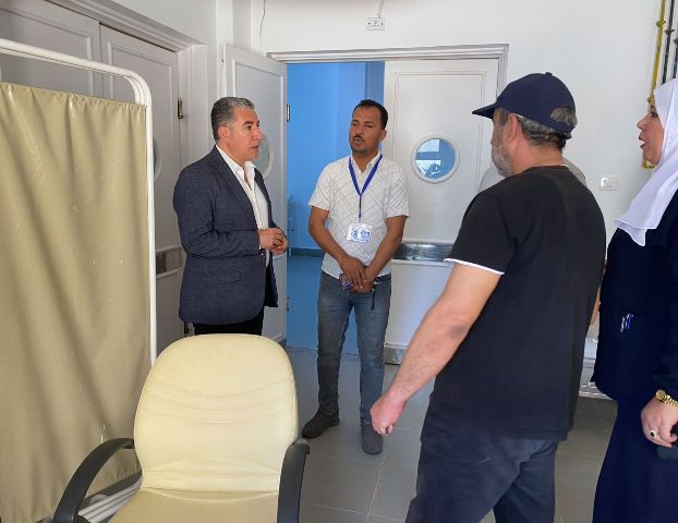 قام الدكتور مبروك سالم وكيل وزارة الصحة بمطروح على رأس عدة لجان مكبرة لتفقد الخدمات الصحية المقدمة بمختلف منافذ تقديم الخدمات الصحية وبدء الجوله بمستشفى رأس الحكمة للاغاثة والطوارئ لمتابعة انتظام سير العمل والتأكد من الانضباط الإداري للاطقم الطبية ومدي توفر وجودة الخدمات الطبية المقدمة للمرضي وتوافر المخزون الاستراتيجي من المستلزمات الطبية والأدوية وفصائل الدم ومشتقاته وجاهزية المستشفى لحالات الطوارئ والحوادث تزامنا مع الاقبال المتزايد على المحافظة وتحسبا لأى طارئ.