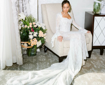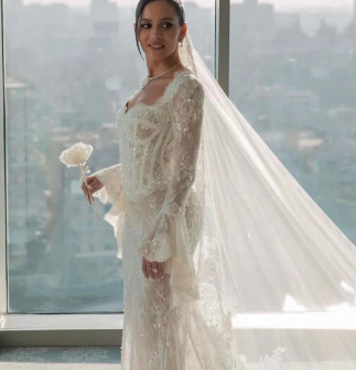 وخطفت جميلة عوض الأنظار خلال فوتوسيشن حفل زفافها الذي تم التقاطه قبل حفل الزفاف.