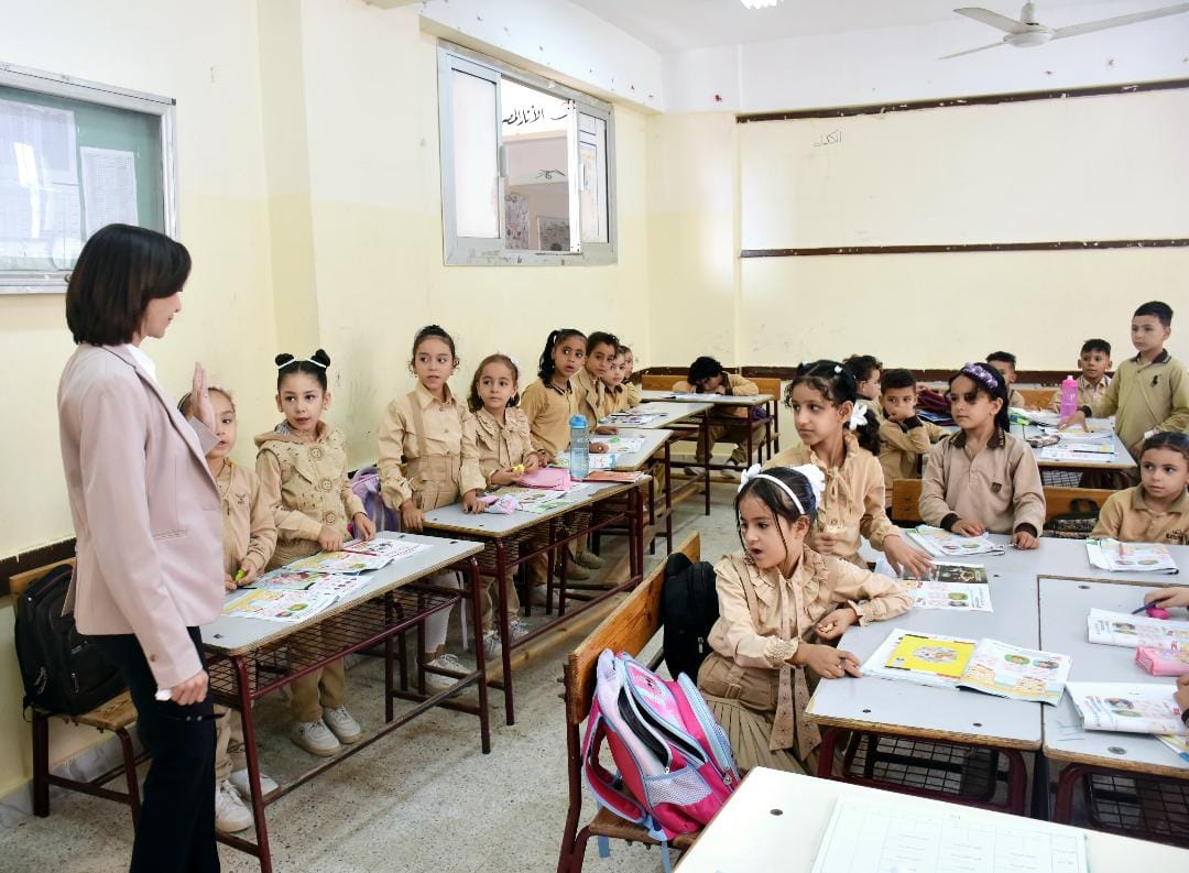 و تفقدت المحافظ فصول المدرسة ورياض الاطفال و المكتبة ودورات المياة و سلامة المقاعد و الاثاث و انتظلم حضور الطلاب وتو زيعهم على الفصول و التاكد من الالتزام بالعدد المقرر بكل فصل و عدم وجود عجز فى المدرسين فى مختلف التخصصات