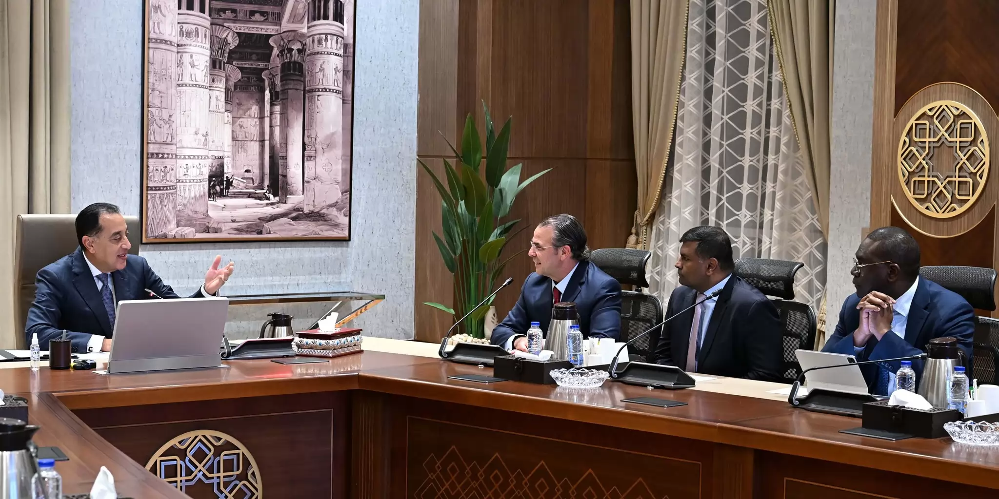 كما أشار رئيس مجلس الوزراء إلى نتائج الزيارات الخارجية التي قام بها مؤخراً إلى عددٍ من الدول، مثل جمهورية الصين الشعبية، والتي شهدت عقد لقاءات مع كبرى الشركات الصينية لجذب الاستثمارات الأجنبية المباشرة، منوهاً إلى النجاح المُحرز في جذب كبرى الشركات العالمية للاستثمار في مصر، مثل هايير، وبيكو، وبوش، ومُعرباً عن استعداده لمد جسر من التواصل المُباشر بين البعثات الدبلوماسية ومجلس الوزراء لسرعة جذب الفرص الاستثمارية الواعدة إلى مصر.