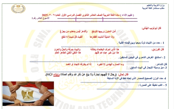 يمكنك تحميل تقييم الأسبوع العاشر في اللغة العربية للصف الثاني الثانوي من خلال بوابة الجمهورية أونلاين مباشرة.