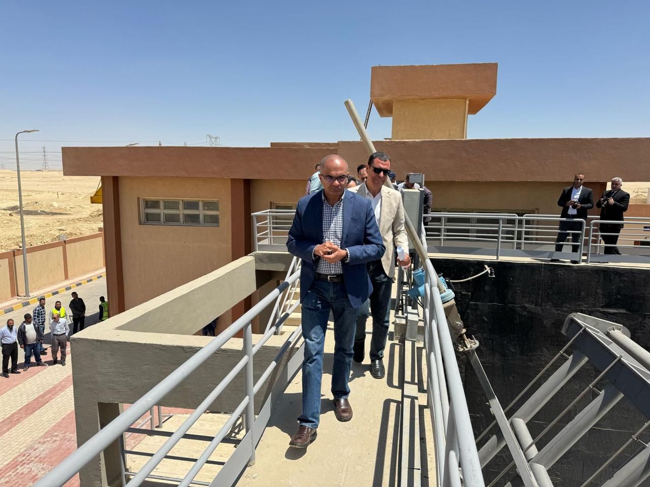 ثم تجول الدكتور سيد إسماعيل، بمحطة معالجة الصرف الصحي بالبرمبل بطاقة تصميمية ١٥ ألف م٣/يوم والتي تخدم ٤ قرى بإجمالي عدد سكان حوالي ٨٠ ألف نسمة، واطَلع على مراحل المعالجة بدءاً من المدخل والمصافي وأحواض التهوية ومبنى الكلور وعنبر نوافخ الهواء والسيب النهائي للمحطة، مؤكداً في هذا الصدد أهمية الاعتماد على استخدام المهمات المصنَّعة محلياً بمختلف مشروعات مياه الشرب والصرف الصحي، لضمان استدامة الخدمة وتوفيراً لموارد الدولة.