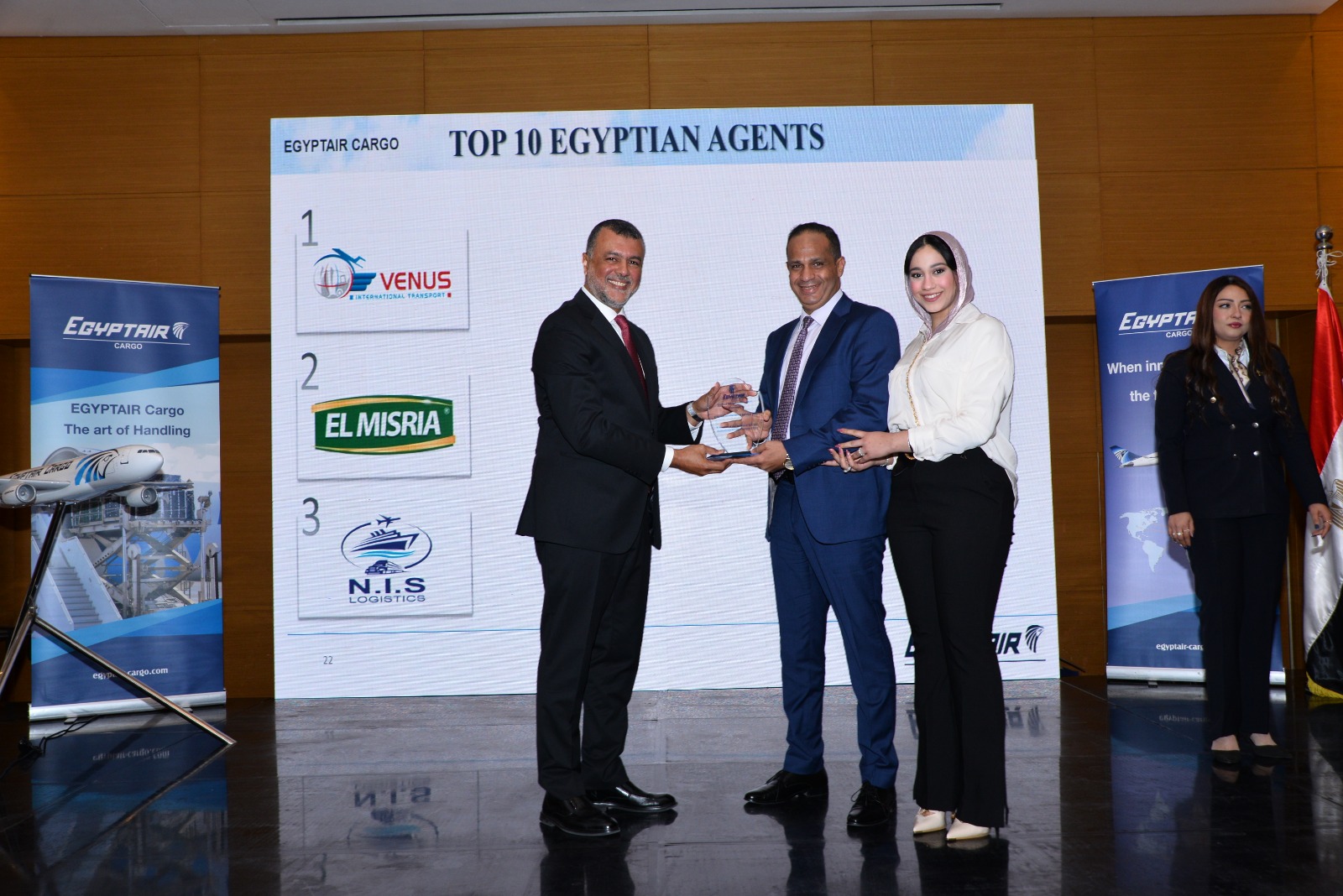 أقامت شركة مصر للطيران للشحن الجوى إحتفالية كبرى بفندق مريديان المطار قام خلالها الطيار إيهاب الطحطاوى رئيس مجلس الإدارة والعضو المنتدب التنفيذى بتكريم وكلاء الشحن الدوليين والمحليين الأعلى مبيعات خلال العام المالى 2024/2025