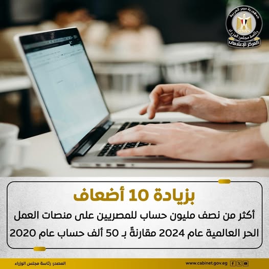 حيث ارتفع عدد حسابات المصريين على منصات العمل الحر العالمية من 50 ألفًا في عام 2020، إلى أكثر من نصف مليون حساب عام 2024.