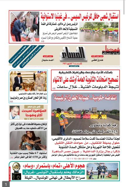 ** وعلي صفحات " المساء الرياضي" تقرأ: