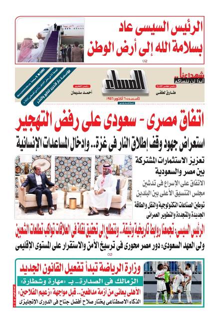 **وعلي صفحات" المساء الرياضي" تقرأ: