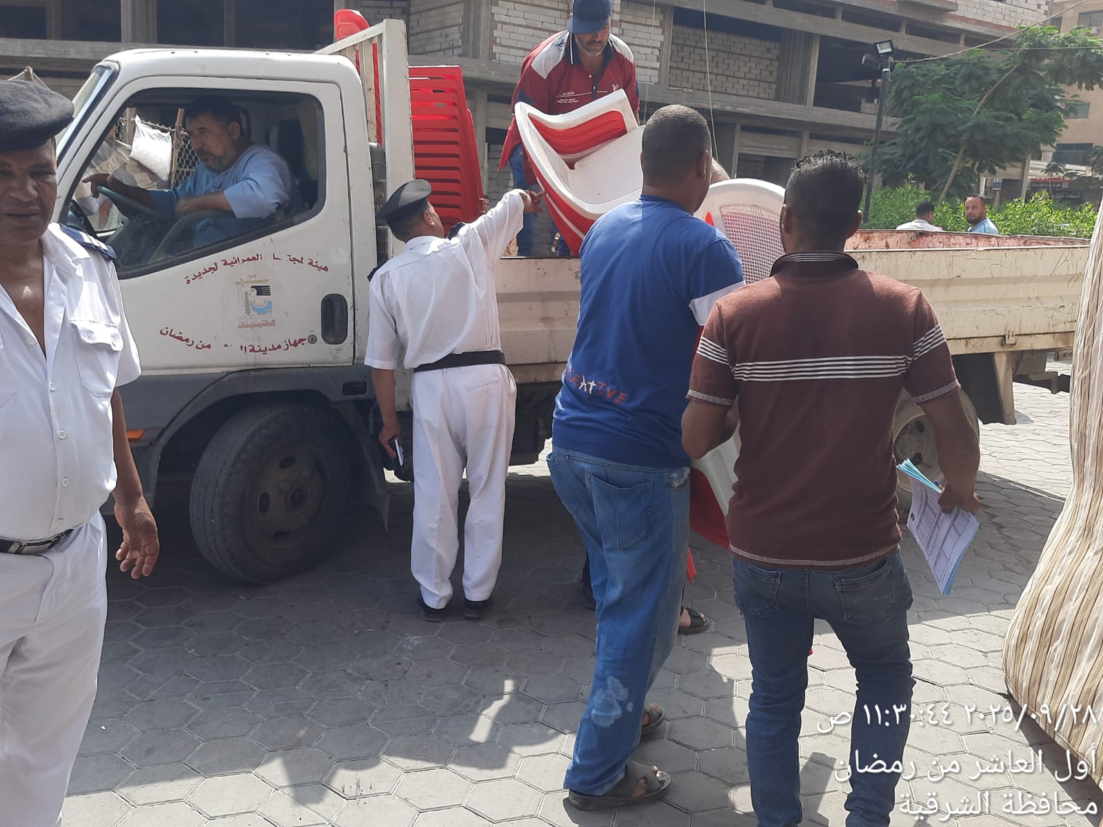 كما تم ضبط تروسيكلين وسيارتين لبيع الفاكهة تعمل بشكل غير قانوني داخل المنطقة.