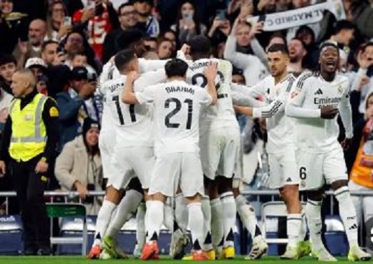 سجل خماسية ريال مدريد مبابي "هاتريك" و كامافينغا و ابراهيما دياز في الدقائق 93،83،73،52،25، من عمر المباراة.