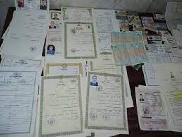 عقب تقنين الإجراءات تم ضبطه بمقر الكيان المشار إليه وبحوزته مجموعة من الشهادات الدراسية خالية البيانات منسوب صدورها للكيان مطبوعات دعائية خاصة بالكيان.