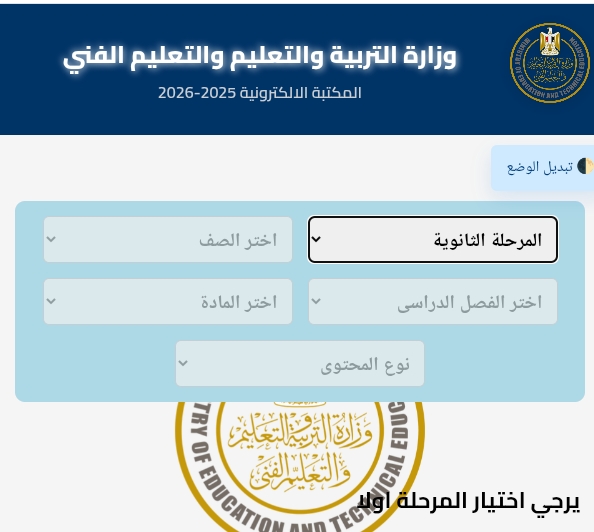 - الدخول على الموقع الإلكتروني الرسمي لوزارة التربية والتعليم والتعليم الفني.. اضغط هنااا