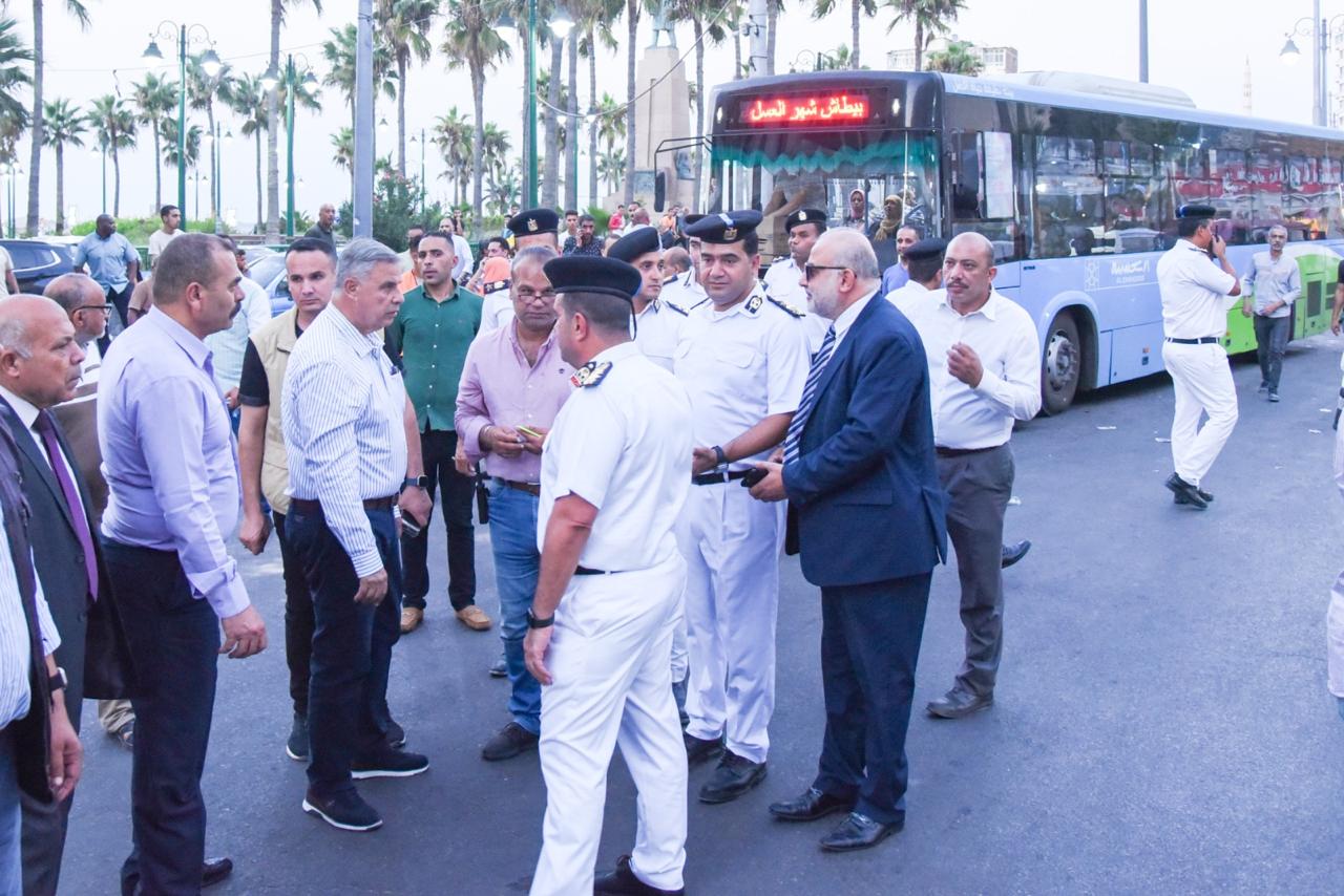 فوجئ عشرات المواطنين اثناء وقوفهم بموقف اتوبيسات العجمى بمحطة الرمل فى انتظارحضورالاتوبيسات التى تأخرت لاكثرمن ساعةعن ميعادها بالفريق احمد خالد حسن محافظ الاسكندرية وسطهم وذلك اثناء جولتة المفاجئة بمنطقة وسط المدينة ليكلف فورا شرطة المروربإحضار10 سيارات ميكروباص لنقل المواطنين لاماكن سكانهم وامربتكثيف اعداد اتوبيسات النقل العام على خطوط العجمى اوقات الذروه خاصة اوقات عودة الموظفين من اشغالهم والطلاب من كلياتهم وذلك تيسيرا على المواطنين
