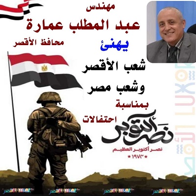 قدّم المهندس عبد المطلب عماره، محافظ الأقصر، خالص التهنئة إلى أبناء محافظة الأقصر، بمناسبة الاحتفال بالذكرى الثانية والخمسين لانتصارات السادس من أكتوبر المجيدة، التي ستظل رمزًا للفخر والعزة والكرامة للشعب المصري وجيشه الباسل.