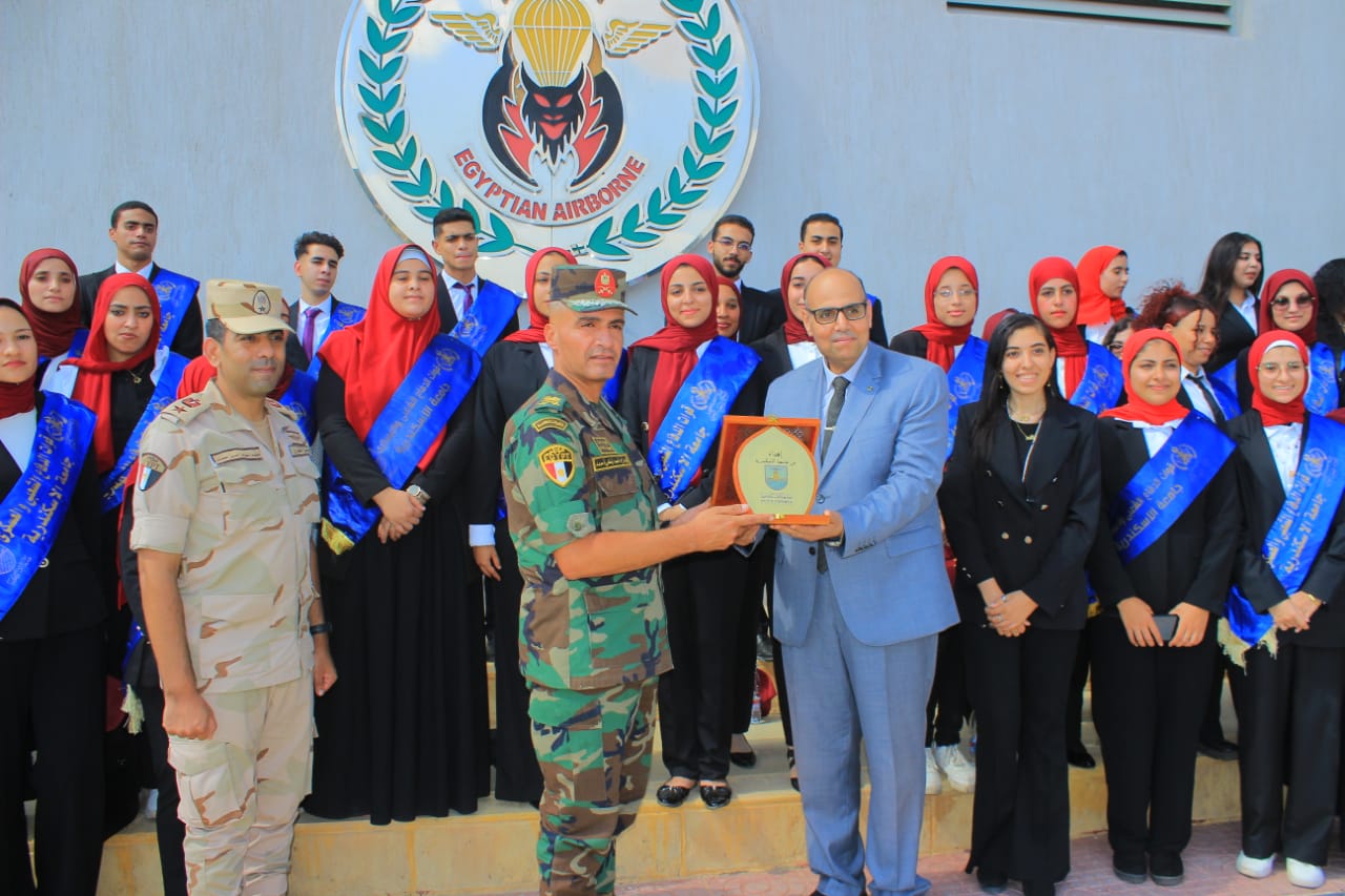 نظمت جامعة الاسكندرية تحت رعاية الدكتورعبد العزيز قنصوه رئيس الجامعة بالتنسيق مع قوات الدفاع الشعبى والعسكرى ممثلة فى إدارة التربية العسكرية بالجامعة زيارة ميدانية لوفد من طلاب الجامعة إلى قوات المظلات المصرية فى إطار احتفالات جامعة الإسكندرية بذكرى انتصارات أكتوبر المجيدة، بهدف تعريفهم ببطولات قوات المظلات، وتعزيز وعيهم بتاريخ القوات المسلحة، وغرس قيم الانتماء والفخر الوطنى لديهم